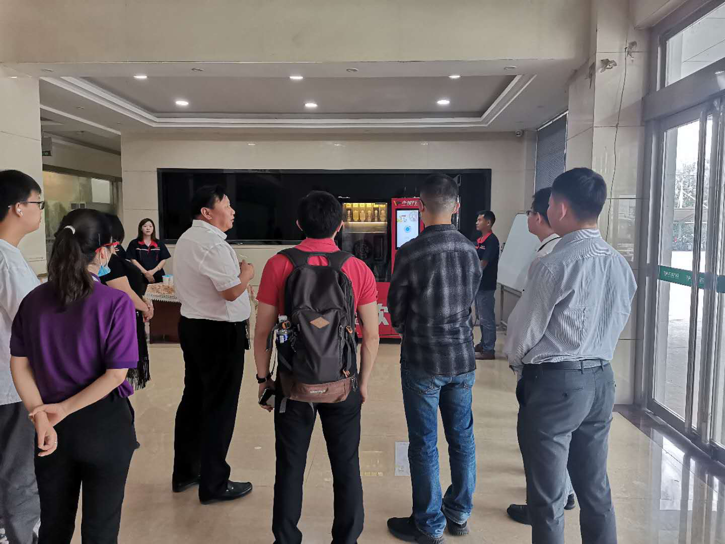 沈董在公司辦公樓一樓大廳,同清研基地團隊成員進行了分享與溝通。并就公司的重要項目—— 五谷養(yǎng)生鮮湯智能售賣機的制作原理、生產工藝、市場應用等方面進行了詳細的講解,團隊成員不時就五谷養(yǎng)生鮮湯智能售賣機的有關問題提出自己的建議。營銷中心的員工現(xiàn)場操作五谷養(yǎng)生鮮湯智能售賣機的制作過程,并送予每位清研團隊嘉賓品嘗,清研團隊就五谷養(yǎng)生鮮湯智能售賣機的設計原理及工藝提高同沈董深入交換意見。隨后,清研團隊到公司的展廳參觀,了解公司的主要產品和公司發(fā)展歷史,并到裝配車間查看五谷養(yǎng)生鮮湯智能售賣機的組裝和生產情況。